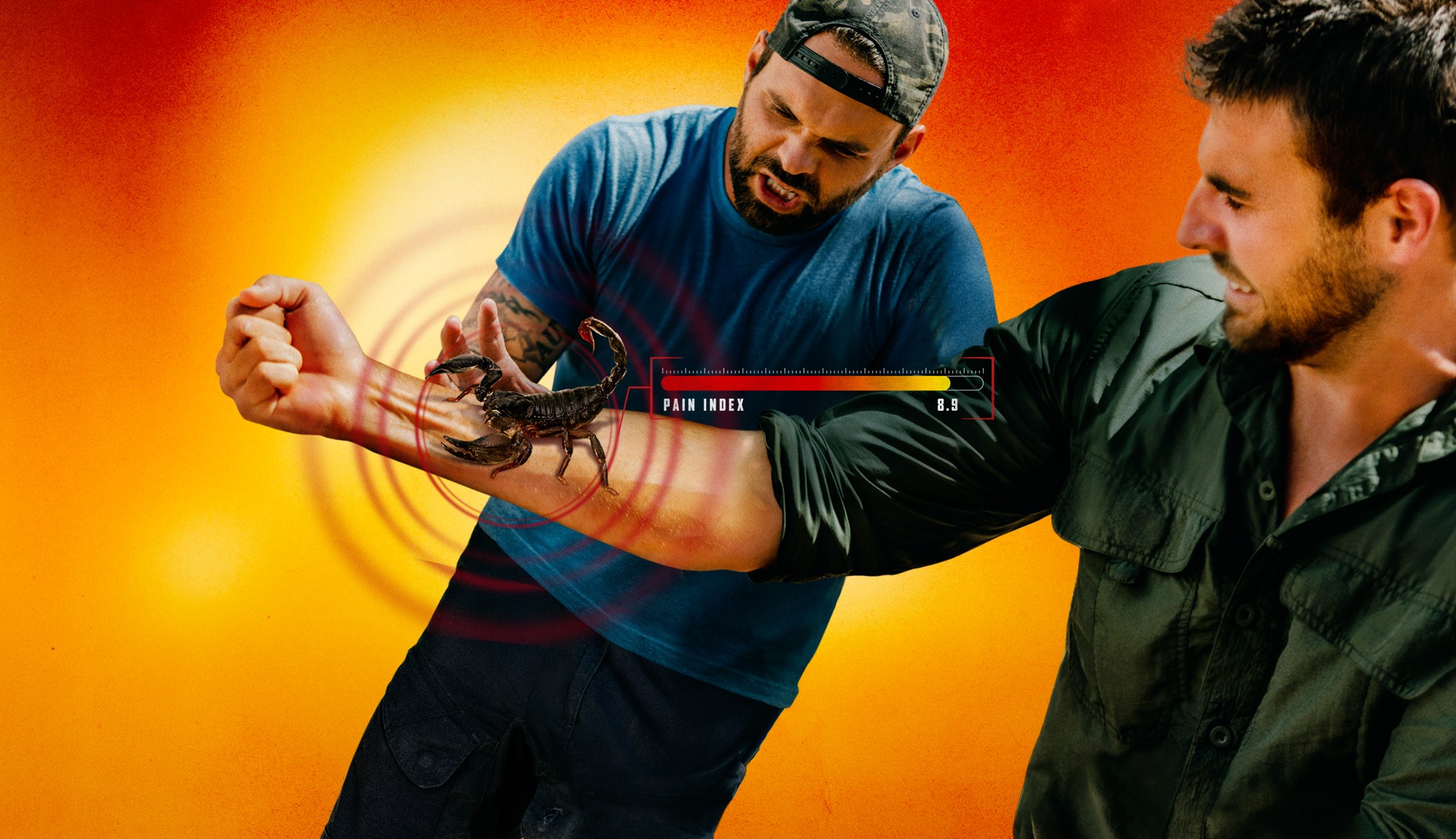 What, then, are we to make of Kings of Pain? The premise of the show is simple enough. Two plucky young adventurers span the globe in search of various fauna to bite/sting/constrict them, before giving the level of pain they experienced a rating on the Schmidt Pain Index, originally the work of Justin O Schmidt, an entomologist. Despite the limpest attempt to claim they are doing something of worthwhile scientific value, the show is dumb. Very dumb. It essentially boils down to two big hairy men shrieking in pain for a minute each, surrounded by half an hour of them telling you how much what they’re about to do is going to smart.